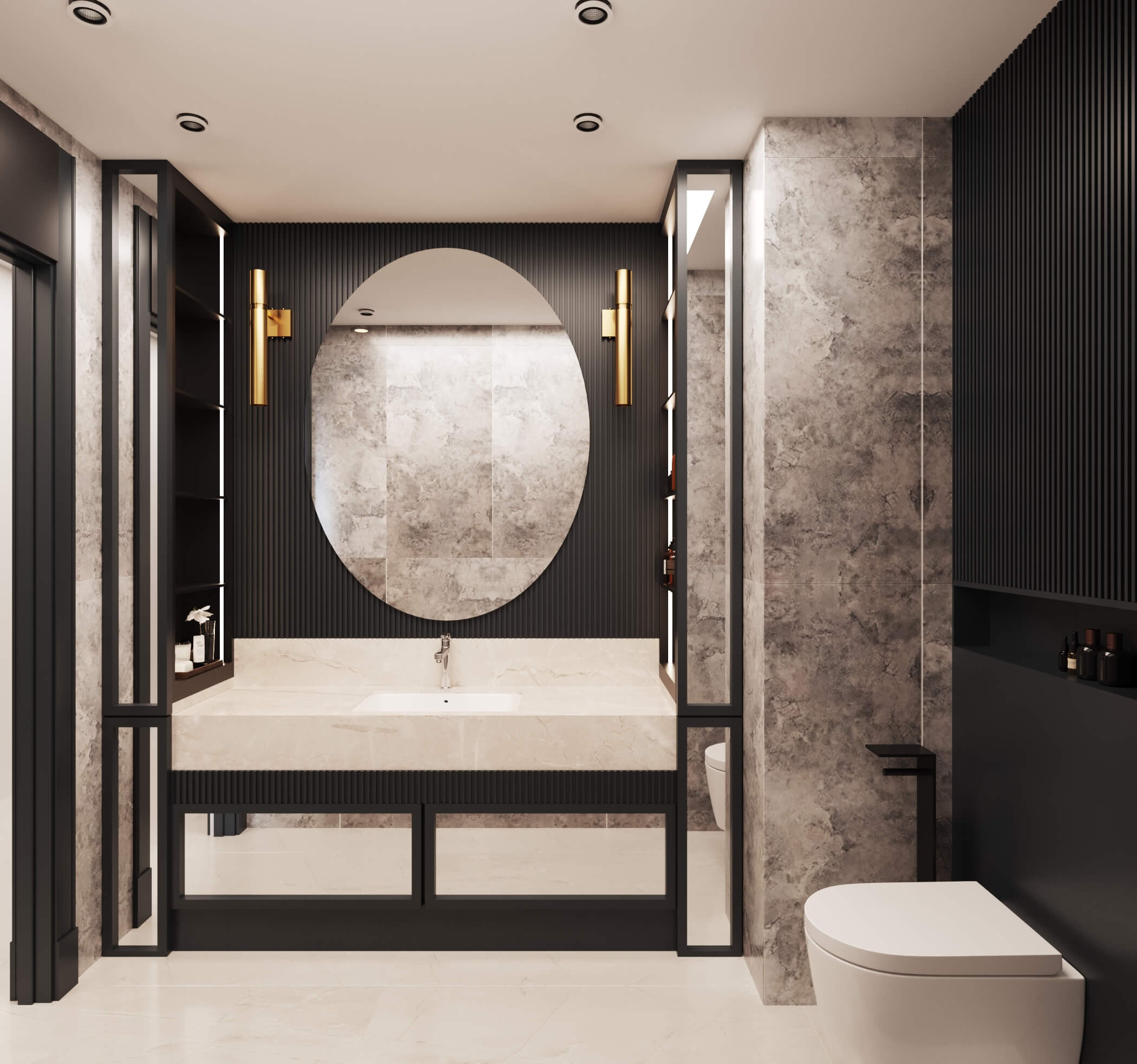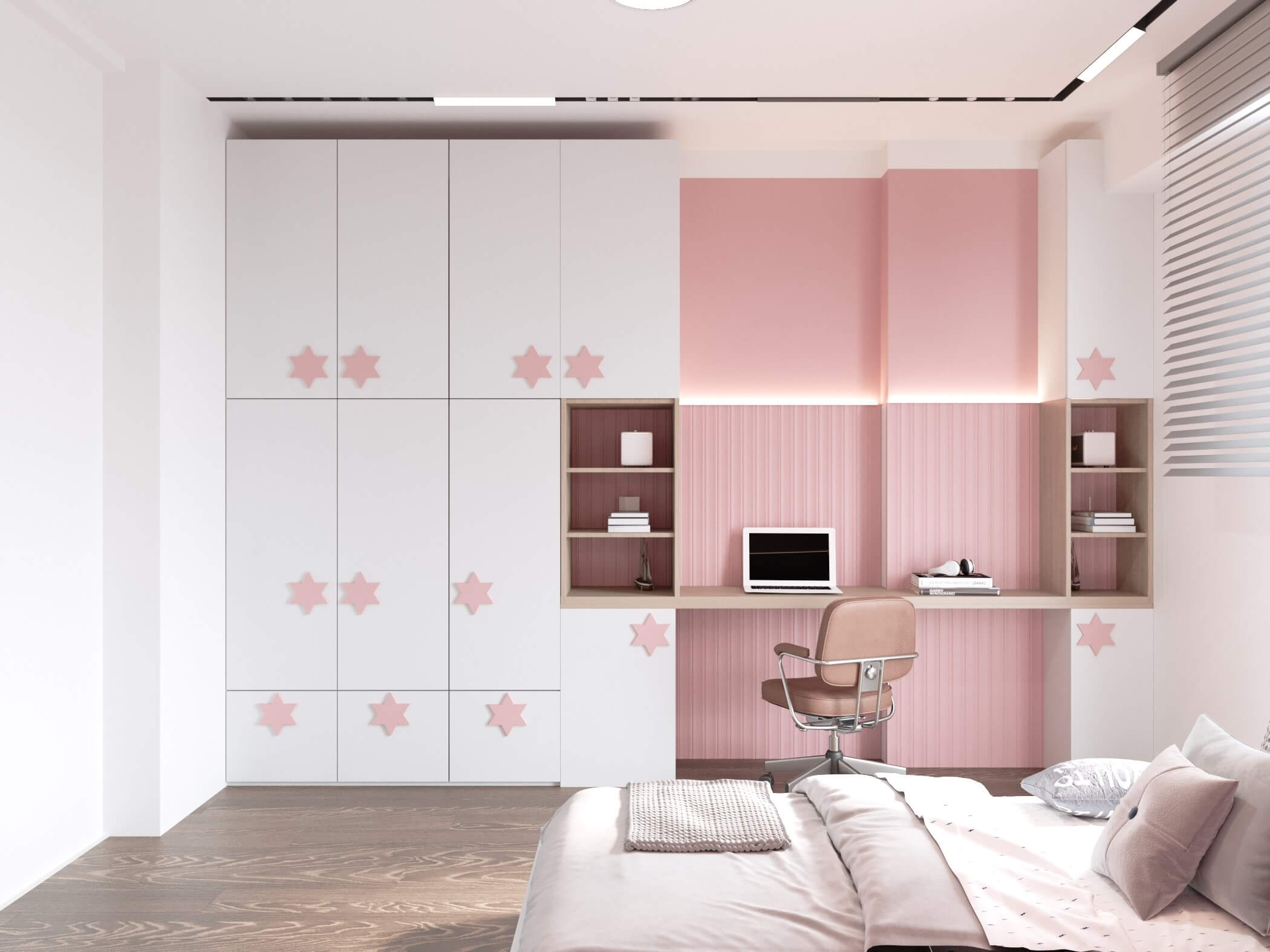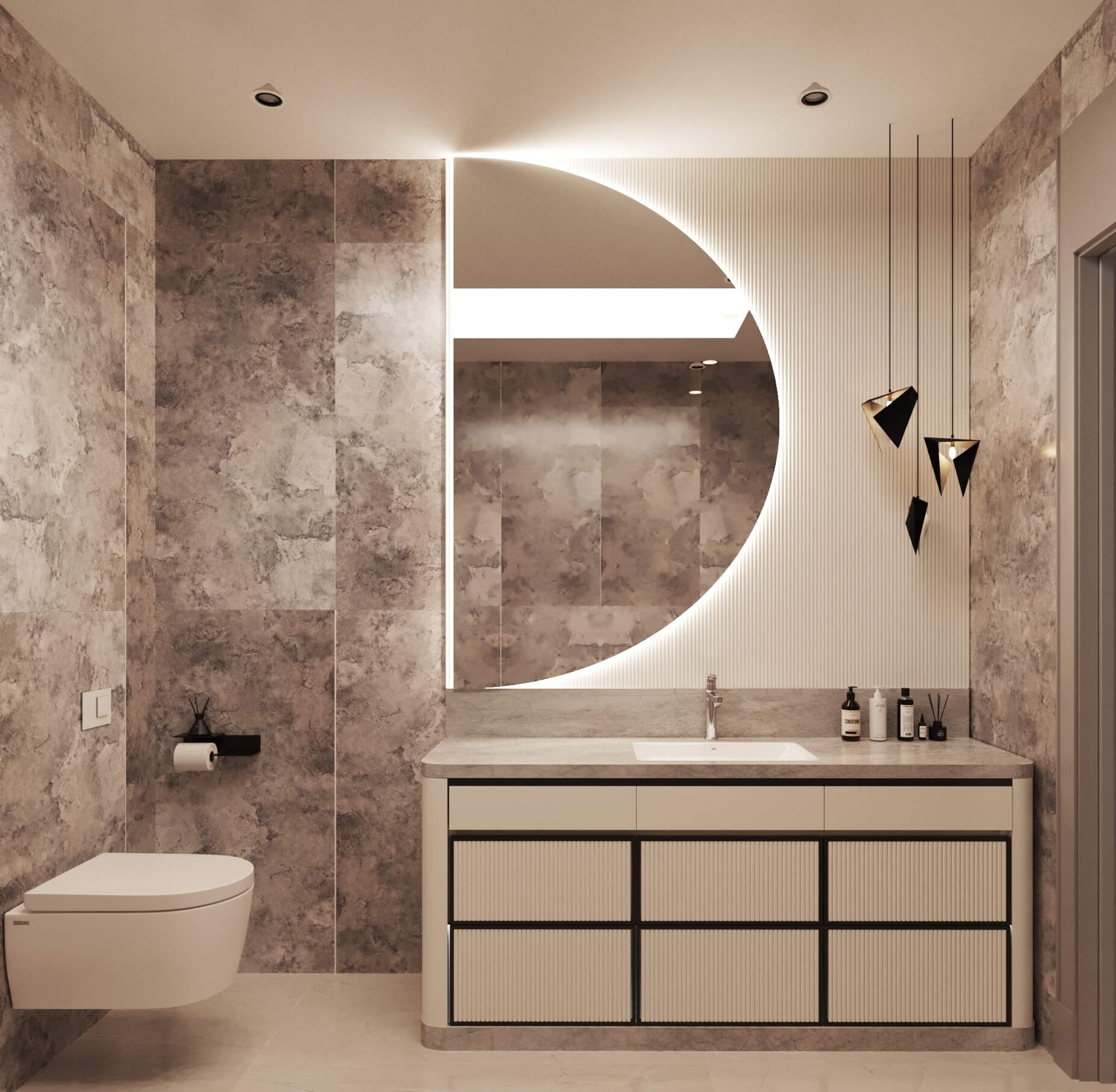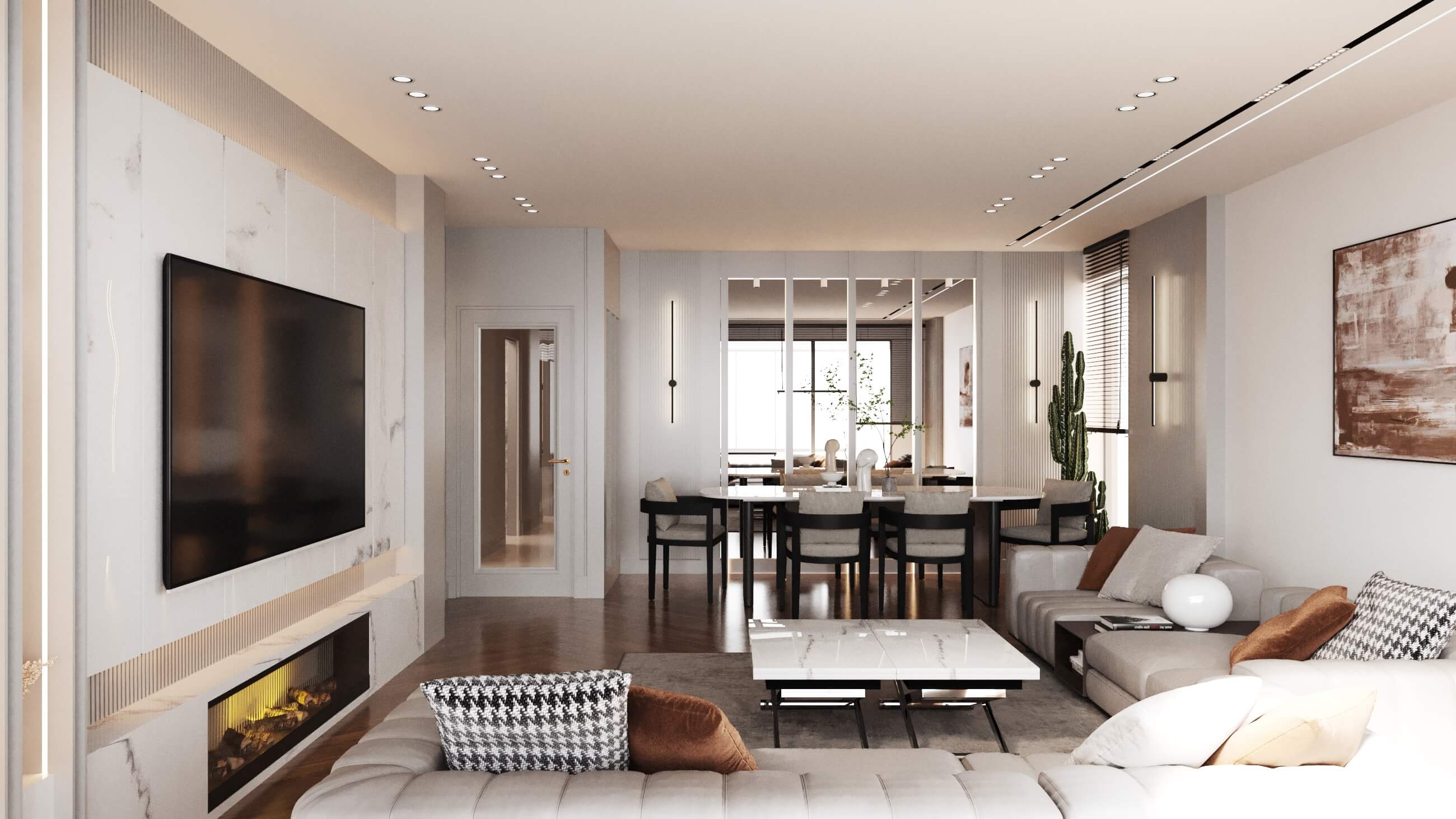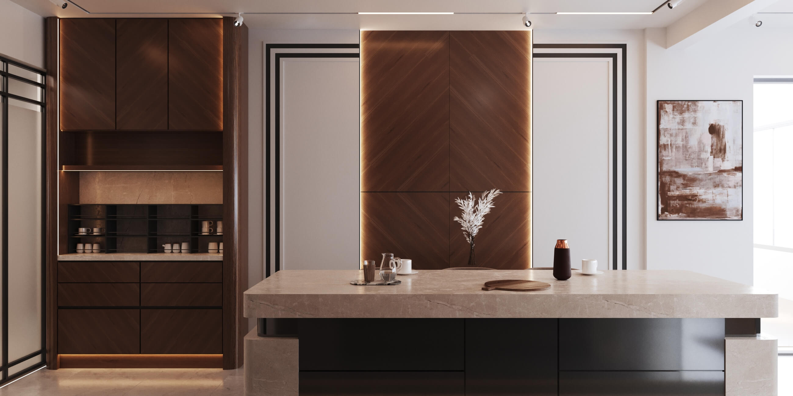 Temelde tek tip tasarlanan dairelerde kullanıcı seçimleri ile temel rengi gri kullanılan dairedeyiz. Giriş, antre alanlarının planlarının aynı, yüzeylerinin birbirinden farklı olması, dairelerin kişiselleştirildiğini gösteriyor. Mutfak, kiler sistemleri ve ocak-evye konumunun aile yoğunluğunun etkisiyle şekillendiği bir planlama ile hazırlandı. Belirli alanlarda kullanılan doğal malzeme, bu dairenin genel görüntüsünde sıcak bir his yaratıyor. Çocuk odaları metrekareleri bazında en verimli haliyle tasarlandı. Çocukların kişisel tercihleriyle şekillenerek uzun vadede kullanımlarına hizmet edecek.